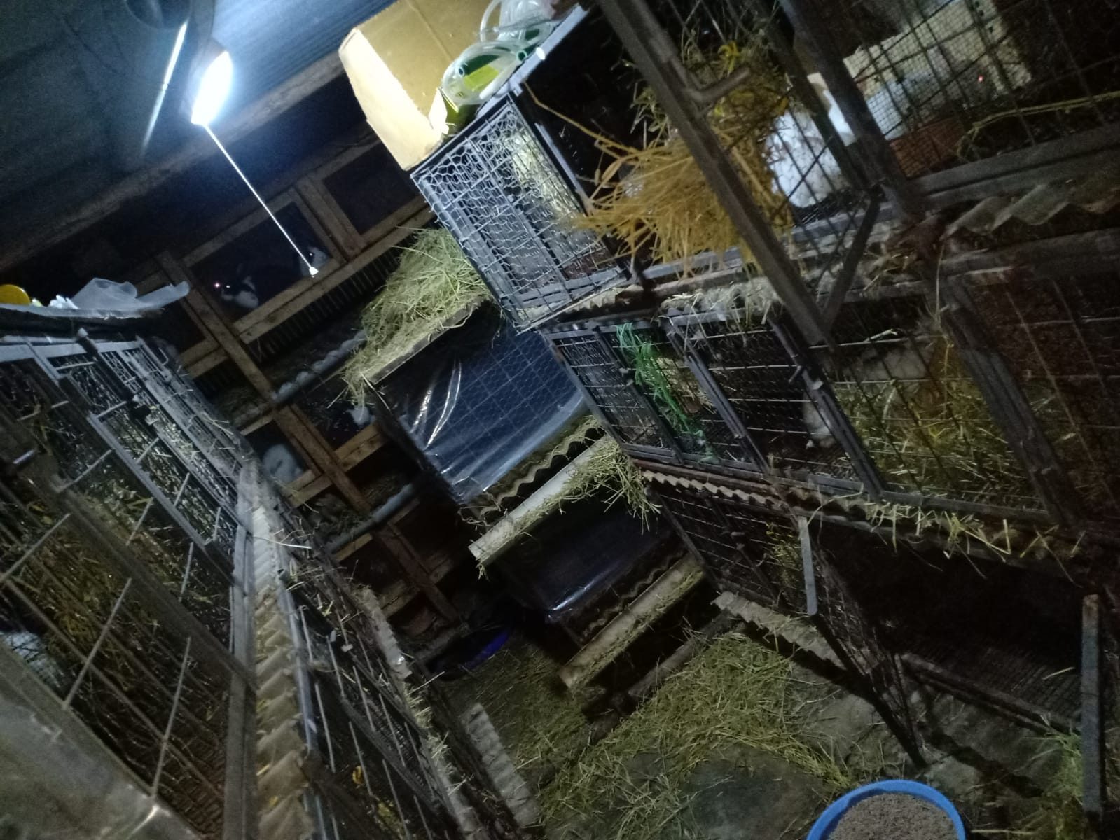 If you must use indoor hutches, ensure the enclosure has ample vertical space—up to four or more times the height of the hutches from the ground. This helps mimic the airflow of an industrial warehouse or the open feeling of being inside a large stadium with a raised roof. The number of tiers—whether one, two, or three—should allow for tall, open space above them. In large industrial indoor rabbit farms around the world, it’s common to see a single tier with significant open space above—what you might call a “rabbit cathedral.”